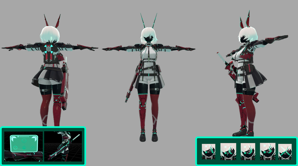 • It is recommended to use this avatar in VR instead of desktop because the buttons for most of the toggles are on the arm HUD.